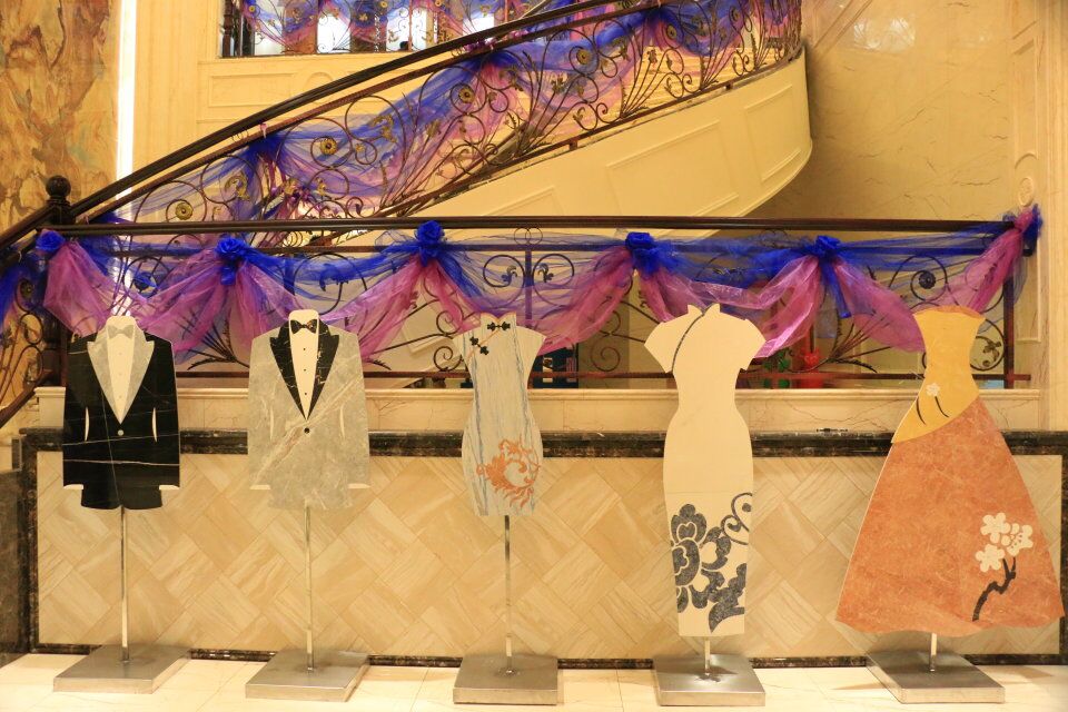 為了更好地展示唯美L&D陶瓷的新產品,我們還精心制作了很多美輪美奐的瓷磚水刀加工造型,把瓷磚與服裝等進行完美結合,淋漓盡致地展現出了唯美L&D陶瓷新品的藝術性,也大受當晚設計師好評。