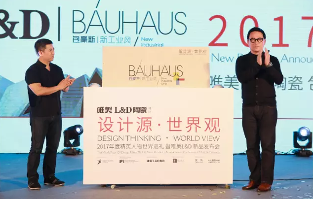 在陳丁榮先生精彩的分享之后,由梁志天先生和唯美L&D陶瓷事業(yè)部總經(jīng)理蘭盛標先生共同為“包豪斯·新工業(yè)風”做了揭幕儀式,并由梁志天先生在新品上進行簽名留念,這標志著“包豪斯·新工業(yè)風”在成都的正式起航。